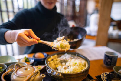 目の前にできたてのご飯を