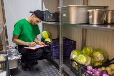 「まかない用」と書かれたカゴに